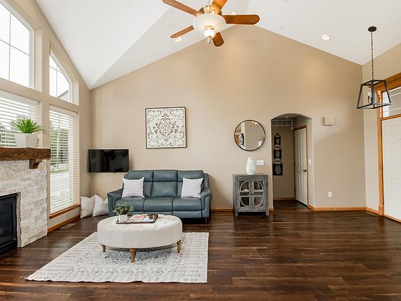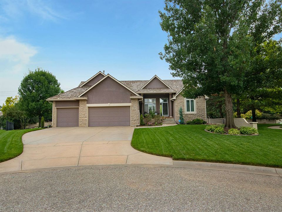 Classy and elegant home in an exclusive community in Wichita! Live the life you deserve in this gorgeous 4 bed, 3.5 bath, 3-car garage single family home; move-in ready and designed for those who enjoy the finer things in life! From a gentle-curving driveway and unassuming entryway, you will be impressed with the dramatic cathedral ceilings and large picture windows flanking a shingle gas fireplace with hardwood mantelpiece in the impressive great room. Hardwood floors indicate continuity and highlight the open concept of the space, with a romantic stairway and matching hardwood balustrade. The formal dining area is in its own alcove with a large window looking out to the landscaped backyard and paved patio out back. The kitchen is TV-show worthy with its angled island counter with exquisite italian marble and a deep matte-black farmhouse sink. Hidden from view is an organized pantry and powder room. The master suite is spacious and features an en-suite bathroom with 2 showers, a tub, and celebrity-worthy walk-in closet. A second bedroom, currently used as a home office, has easy access to a second full bath with a tub. The finished view out basement is just as exquisite as the main level with its shingle-designed corner fireplace, wet bar, and spacious family room lounge. Two more bedrooms share common access to a third full bath with tub. The backyard is fully fenced with a large paved patio where you can entertain a small group of friends should the weather permit. The landscaping and careful selection of non-invasive greenery adds to the appeal of the home, making this one comfortable and aesthetically-pleasing residence. Additional features that come with the sale of the home are the surround-sound system installed on all floors and the back patio, the new HVAC unit and a secondary AC for the master suite, 2 gas fireplaces, a gas oven in the kitchen, and recent countertops, paint, and flooring updates. The location of the home doesn’t hurt either with the community’s exclusive access to common amenities and a quick drive to the Reflection Ridge Golf Course. Call us today and we will set you up with an exclusive showing; this is one deal you simply can’t miss!