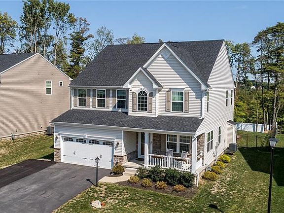 This beautiful, 3 year "young", 4 bedroom, 3-1/2 bathroom, 2 car attached garage...with a parking pad for a 3rd vehicle, 2 story Colonial is in the South Fayette School District...just minutes away from the campus. Spacious open floor plan, beautiful hardwood floors, eat-in gourmet kitchen with large (96" x 39") center island, stainless steel appliances, adjacent to a 15' x 12' sunroom with access to the 2 year old 19' x 20' and 10' x 16' Trex decks, and a fenced-in, private, level back yard....convenient access to walking trail and park. Large 23' x 19' lower level gameroom, with wet bar rough-ins, an adjacent full bathroom, an adjacent 16' x 12' bonus (exercise?) room and large basement storage space. Huge master bedroom, with tray ceiling, 2 walk-in closets and en suite. Convenient 2nd floor laundry room...washer and dryer included. This home has the "bells and whistles" you'd want...and is plug and play!