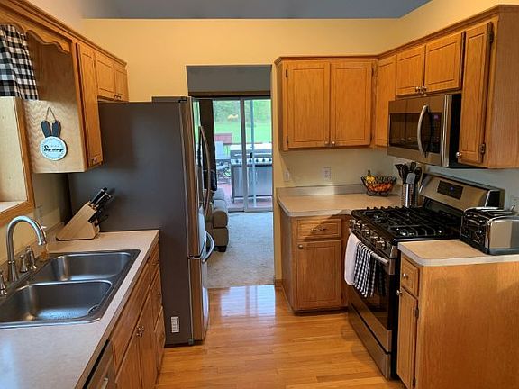 3 Bedrooms, Walk in Closet, Six Panel Doors, 2 Bathrooms with lower level bath all nicely tiled! Stainless Steel Appliances. 3 Car heated garage, landscaped with sprinkler system Birch trees, Maple Trees, Pine Trees, huge back yard. 16 x 12 Shed included. Tongue and Grove Family Room with gas corner stove, Walk out to Patio. Living Room has patio doors to large deck for entertaining. Pull down steps to Garage Attic and additional storage. New Roof coming due to Hail.