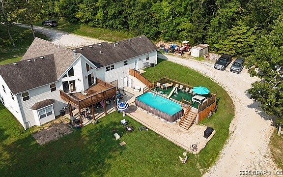 Nestled on 15 acres in Warsaw this spacious 5 bedroom, 5 bathroom (2 are 1/2 baths) home is an entertainer's paradise and family retreat all in one! Recently updated in 2022/2023 including a full kitchen on the lower level, this approximately 3700 sq. ft. residence is turn-key with a storm shelter ready for its next chapter of memories. The expansive outdoor area is where the magic happens, featuring a camp fire area with fire pit, horse shoe pit, scenic walking trails, frisbee golf, and a well stocked fishing pond complete with a zip line, fishing dock, paddle boat and kayaks. On warm summer days, enjoy the above-ground swimming pool and the 50 foot slip and slide for endless family fun. A unique and valuable feature of this property is the lower level, which has been successfully operating as an Airbnb for the past 11 years, generating reliable revenue. Whether you're seeking a private family oasis, a vacation rental with a proven income history, or a mix of both, this versatile estate provides the best of both worlds. Don't miss this rare opportunity to own a property that promises both a peaceful rural lifestyle and profitable potential. Schedule through Showing Time