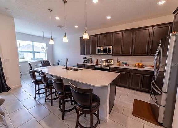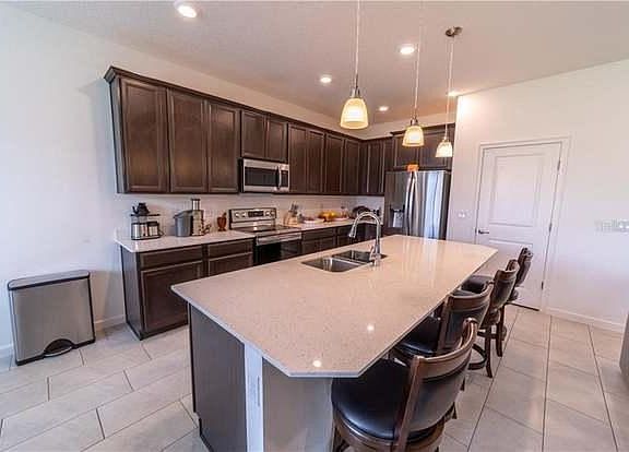 Welcome to this Stunning 2-story home with 4 bedrooms and 3.5 bathrooms. It offers the epitome of modern comfort and convenience. The beautiful curb appeal invites you inside to a large and open concept. The open floor plan guides you to the kitchen area. The Kitchen comes fully equipped with modern appliances including a microwave, range, dishwasher, and refrigerator, making meal preparation a breeze. It comes with granite countertop, a gorgeous layout and easy maintained floors. In the kitchen, you will have a large island with lots of counter space as well as cabinets for storage. Also included is a very large pantry area for storage. The spacious living room is lit up by a large glass door leading you to the outside patio area. With the Master Bedroom on the main level it offers flexibility and accessibility. The private bathroom comes with two sinks and vanity. Also it had a large shower and walk-in closet. On the other side of the home, you have the downstairs Laundry Room and another half bathroom. There is also a Flex Room which is perfect for an office space or formal living area. Upstairs you will find 3 additional large Bedrooms and 2 additional full Baths and a sitting Loft ensuring ample space for everyone. The Loft area could be used as a play area, movie room, office space or anything else! The home features a spacious 2 car garage and a two-car driveway providing ample parking and storage space for your vehicles and holiday decorations. From this home you will see Disney fireworks and is close to many restaurants and theme parks. This gated community comes with a fitness center, olympic-size pool and a dog park. Tenant is responsible for upkeep of property and all utilities. Owner is looking for a long term tenant. Tenant must abide by all Home Owners Association Rules and Regulations The Home is situated in a family friendly neighborhood, and is close to schools, shopping centers, restaurants and theme parks and only few minutes to Disney. This is a MUST SEE property. Don't miss your chance to experience the comfort and convenience of living in this delightful Clermont home. Call TODAY to schedule a viewing. Come see your new home before its gone!! Free cable and Internet maybe a possibility. Tenant pays for all utilities. No smoking is allowed