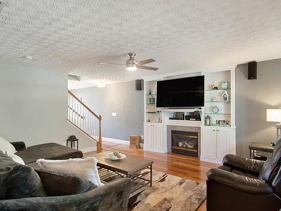Walk the 3D Tour of ''The Cumaru Condo''! Homeowners have completely updated this home to perfection. Downstairs they have replaced all the carpeting with real hardwood flooring (a Brazilian Teak called Cumaru), custom built cabinetry surrounds the gas fireplace with a shelf for a big screen TV. The kitchen can accommodate farmhouse table with room to spare. New granite counter tops, subway tile back splash, new soft-close cabinets, and stainless steel appliances in this stunning kitchen. Upstairs has newer carpeting and the bathrooms are show stoppers. Ceramic and glass tile, marble, new vanities, light fixtures, mirrors, and even a dual head rain shower in your owner's suite that has vaulted ceilings and dual closets. Hilliard schools, Columbus taxes.