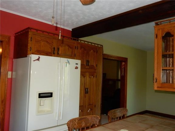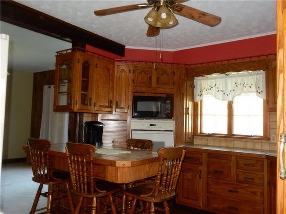 Solid Brick Home with tons of Country Charm and Original Woodwork. Covered Front Porch with Ceiling Fan. Attached 2 Car Garage and Extra Carpad/Driveway for Parking. Living Room has a Decorative Fireplace. Dining Room has a built in Cabinet and Sliding Glass Door to Deck, overlooking an Amazing Yard. There is an Electric over hang Awning included. Country-Style Kitchen, with Beautiful Cabinets and Bar Area. All appliances and Bar Stools included. Carpets were just cleaned, and Hardwood floors are underneath. Brand New Shower with Ceramic Tile in the Upstairs Bath. Three Bedrooms have nice size closets upstairs, and the 3rd Bedroom has built-in beds. The Basement has a 2nd full Bath. Very large areas downstairs. The Basement is 23x19 and has a woodstove. The laundry area is 21x13 and has built in cabinets. In addition, underneath the 2-car garage is a 23x13 workshop with gas heater!
