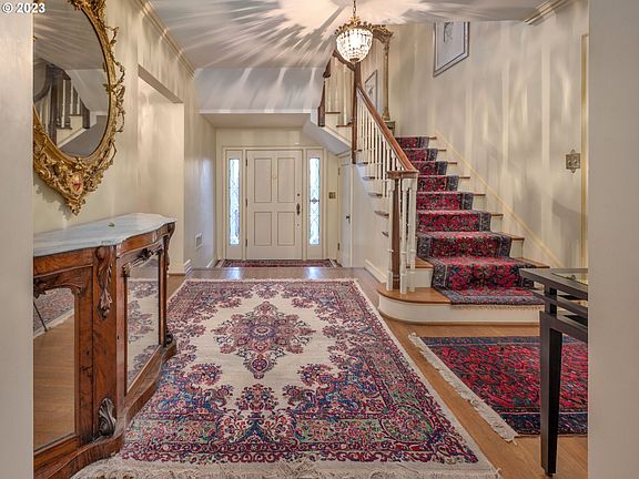 This 5 Bed, 4.5 Bath Portland Heights Classic Grand Colonial sits high above the street at the top of upper Montgomery. Enjoy dreamy views from the second floor or entertain throughout the main level in well-appointed spaces with preserved period details. This fabulous floor plan boasts a grand foyer, a spectacular den with wet bar, a kitchen w/ bonus nook, formal dining and an oversized living room for holiday gatherings by the fireplace. Timeless wall paneling, crown molding, sparkling chandeliers. Light and bright throughout.4 large bedrooms and 4 baths on the second floor. A studio space with a bath over the garage with its own entrance is an ideal setup for a home office or guests. Large unfinished basement awaits your finishes. Oversized lot (.31 acres) with backyard patio for summertime happy hours. Long driveway. A nature lover's dream in the shadow of Council Crest with proximity to Marquam Park hiking trails. [Home Energy Score = 2. HES Report at https://rpt.greenbuildingregistry.com/hes/OR10209497]