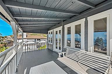 UNFURNISHED~Enjoy incredible panoramic ocean views from this beauty located in upper Victoria Beach. Recently remodeled with stunning upgrades including glazed white cabinetry, Caeserstone counters, hand-distressed hardwood flooring and newer appliances. Large ocean view balcony of living room to enjoy classic Laguna Beach sunsets. Living room and kitchen upstairs with both bedrooms downstairs. Large grassy yard also taking advantage of the incredible views. Unfurnished for a two year lease There is a separate detached studio on the same lot with a fenced in yard. The studio tenant has use of shared laundry on site once weekly on a mutually agreed upon day. The main house pays all utilities, trash and gardener for the property. Owner's gardener is $300 per month. The rent of $6000 reflects a $100 credit towards the studio's utilities. No smoking allowed at any time.