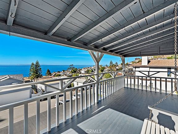 UNFURNISHED~Enjoy incredible panoramic ocean views from this beauty located in upper Victoria Beach. Recently remodeled with stunning upgrades including glazed white cabinetry, Caeserstone counters, hand-distressed hardwood flooring and newer appliances. Large ocean view balcony of living room to enjoy classic Laguna Beach sunsets. Living room and kitchen upstairs with both bedrooms downstairs. Large grassy yard also taking advantage of the incredible views.