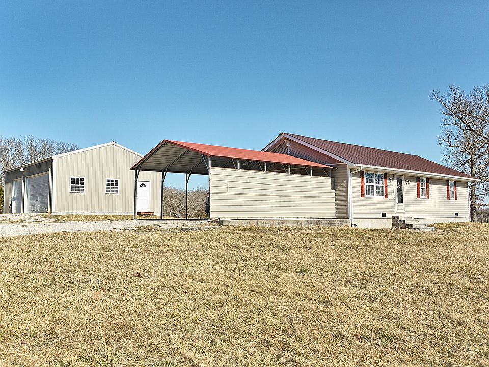 Peaceful Country Setting with Ranch Style Home on 11acres! A short drive in the country will take you home to a private lane, winding around a beautiful stocked pond... The House on the hill offers a NEW! Metal Roof (Nov. 18), 3 bedrooms and 2 full baths, beautiful oak cabinetry & NEW! laminate hardwood in the kitchen. ALL Appliances Stay; Washer & Dryer, too! The property offers a beautiful view, open pasture & is fenced and cross-fenced ready for livestock. This package is made complete with an attached 2-car metal carport anchored on a concrete pad and a nice 24x36 insulated shop with 2-Overhead Doors, concrete floor, electric and is stubbed for water. HSA Home Warranty Included! Call us today for your private showing!
