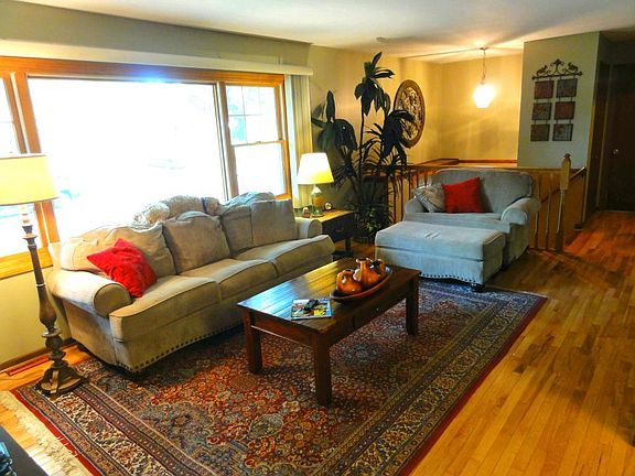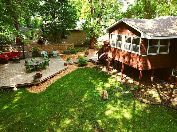 Modest but beautiful split entry home on quiet dead end street with mature trees. Several upgrades added and features remodeled since 2013, with new appraisal in August 2016. List of features : Pine cabin style garage fully insulated with acoustic ceiling and full size bar, concrete driveway with in ground basketball hoop, 1200 sq ft floating deck with out building off of deck and beautiful cedar privacy fence plus side deck for grill and side deck for smoker, stone fire pit, deck has amazing low voltage lighting on automatic timer and festoon lighting overhead, beautiful landscaping including perennial garden and professionally built rain garden with stone wall, gorgeous miniature flowering crab tree, three season porch with knotty pine which is enclosed underneath for yard storage, hardwood floors, upgraded stainless steel appliances, kitchen backsplash, upgraded countertops, and new kitchen hardware, brick accent wall in living room with knock down ceiling throughout upstairs, giant living room picture window with views of Chisago Lake, hobby/craft room with two desks and giant workbench (removable), totally upgraded bathroom with giant 36"X60" glass framed shower with agate pebble floor, rustic tile wall, real slate floor, black elegant toilet, tin ceiling, crown moulding, secondary cubby which can accommodate second vanity, master bedroom is "Swedish Bedroom" style and includes beautiful crystal chandelier, cozy family room downstairs with glass door fireplace, downstairs bathroom is gorgeous weathered cedar vanity and copper ceiling with a single place shower, trimmed out bedrooms, newer Anderson Windows throughout home, newer carpeting, 2012 hot water heater and 2012 efficient furnace just sips natural gas, central air.