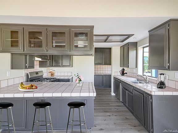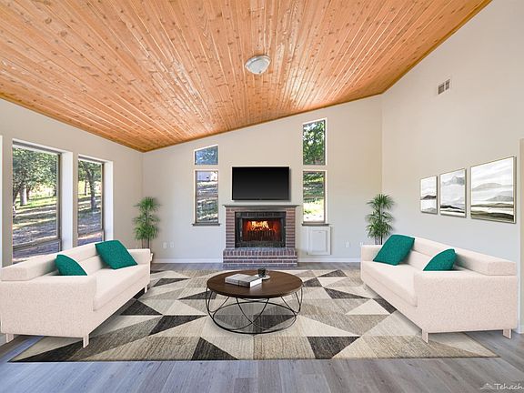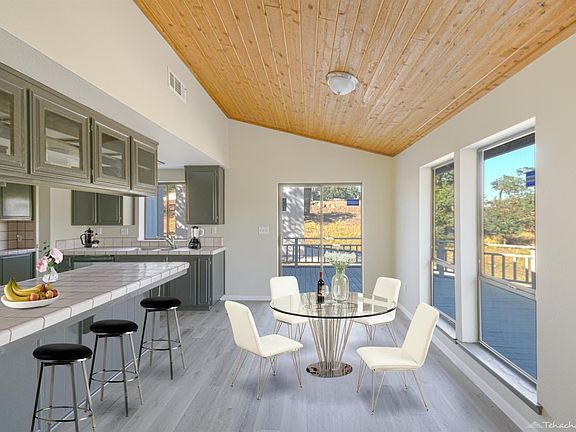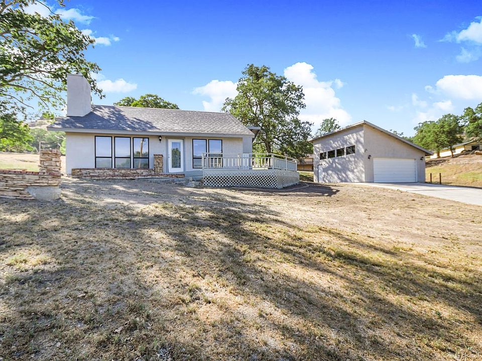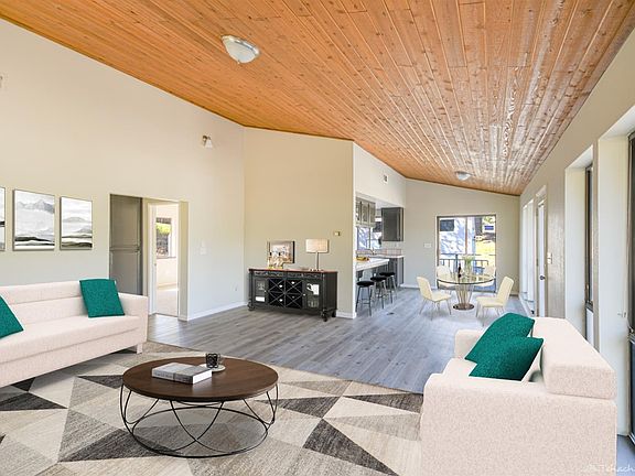 This contemporary stucco & stone home at the end of a quiet cul-de-sac is ready to host your 4th of July BBQ! Step inside this updated 2-bed, 2 bath home to find an open floorplan with fresh paint, new wood-look plank flooring and new carpeting. The living room has custom wood-paneled ceilings and a cozy wood-burning fireplace. Around the corner, your kitchen features new stainless steel appliances, refinished cabinets and a breakfast bar overlooking the dining area. Just steps from the kitchen, you can enjoy those mountain views and entertain guests on your massive front deck. The extra-wide property provides enough room for a spacious backyard as well as a huge detached garage/workshop (with soaring ceilings too!) Back inside, the master suite has an attached bathroom with dual sinks and a tiled stand-up shower. The guest room includes corner windows and new closet doors. This private retreat feels isolated, but your so close to everything you need in town. Come see this one in person!