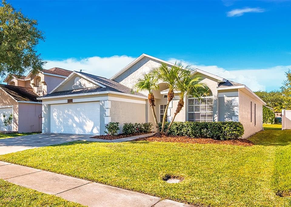 3 Bedroom 2 Bath 2 Garage Home in Meadow Pointe / Wesley Chapel. Freshly Painted Inside and Out. Brand New Roof, Newer Water Heater, Too. New Front Landscaping, Great Curb Appeal! Step Inside and You’ll Find Many New Light Fixtures and Ceiling Fans. But The Very First Thing You Will Notice are Plant Shelves and The Soaring High Ceilings Throughout Most of the Home. Start Your Tour In the Dining Area, and Your Big Beautiful Living Room. From Here, to the Right Are Two Spacious Bedrooms, With Plush New Carpet and Large Windows Which Let In Natural Light. And Also, A Full Bath With Tub/ Shower. Back In The Living Room and Continue Again to the Left and You’re In The Kitchen. Sturdy Ceramic Tile Floors Here. And Plenty of Cabinet Space. Notice Your Brand-New Frigidaire Appliances, Including Refrigerator, Dishwasher, Glass Top – Self Cleaning Range / Oven, Plus Microwave and Dishwasher. There’s Also a Closet Pantry and Your Inside Laundry Room Is Here As Well. To The Right is Your Family Room with Breakfast Bar, with High Ceilings and Ceiling Fan, And Sliders Leading Out to the Back Yard. Let’s Check Out the Master Bedroom. More High Ceilings, Plush New Carpet, Ceiling Fan and Sliders Leading Outback Here As Well. The Master Features a Huge Walk In Closet and Also a Fully Equipped Ensuite Bath with Double Sink Vanity, Bath Tub and Separate Shower. Your Next Home Also Features a 2 Car Garage With Opener! At Meadow Pointe, You’re Part of a Community Development District, with Access to the Meadow Point Clubhouse and Pool. Your Modest CDD Fees Are Already Included as Part of Your Property Tax Total Bill. Your Next Home Is Located Just Minutes from the Shoppes at New Tampa and Wiregrass. Golf At Saddlebrook to the North, or Hunters Green to The South. Don’t Wait Too Long or This Home Will Be Gone!
