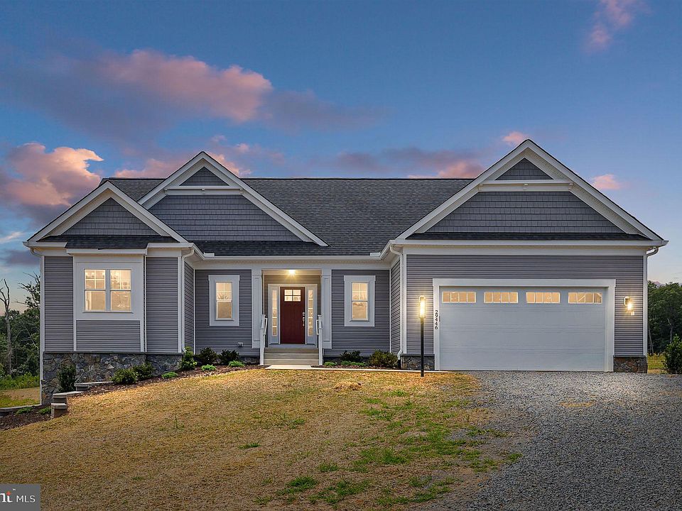 New construction by Carpenter Homes. Upgraded rambler on a full basement. Split bedroom floor plan. Primary bedroom suite with 2 walk-in closets. Primary bath with soaking tub, separate tiled shower with glass surround, double sink vanity, linen closet. Upgraded soft-close vanity. Upgraded tile. Upgraded faucets and plumbing fixtures. LVP flooring throughout main living area. Gourmet kitchen with upgraded GE Profile appliances and a built-in wine fridge. Upgraded soft-close cabinetry with dovetail joints on drawers. Granite counters and backsplash. Beautiful vinyl siding with vinyl shake-style accents and stone facade around foundation. Poured concrete pad outside basement door. Covered concrete porch off family room with vinyl railings. Two car garage is drywalled and painted with recessed lighting and garage door opener. Full unfinished basement with plumbing rough-ins.