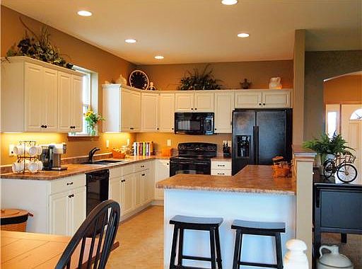 Breathtaking atrium floor plan with w/ two story wall of windows, four seasons porch, oversized patio, lots of upgrades including tile floors, under cabinet lighting, fireplace in walk-out lower level, irrigation, sound system, central vac. "Pottery barn" decor-move in ready!