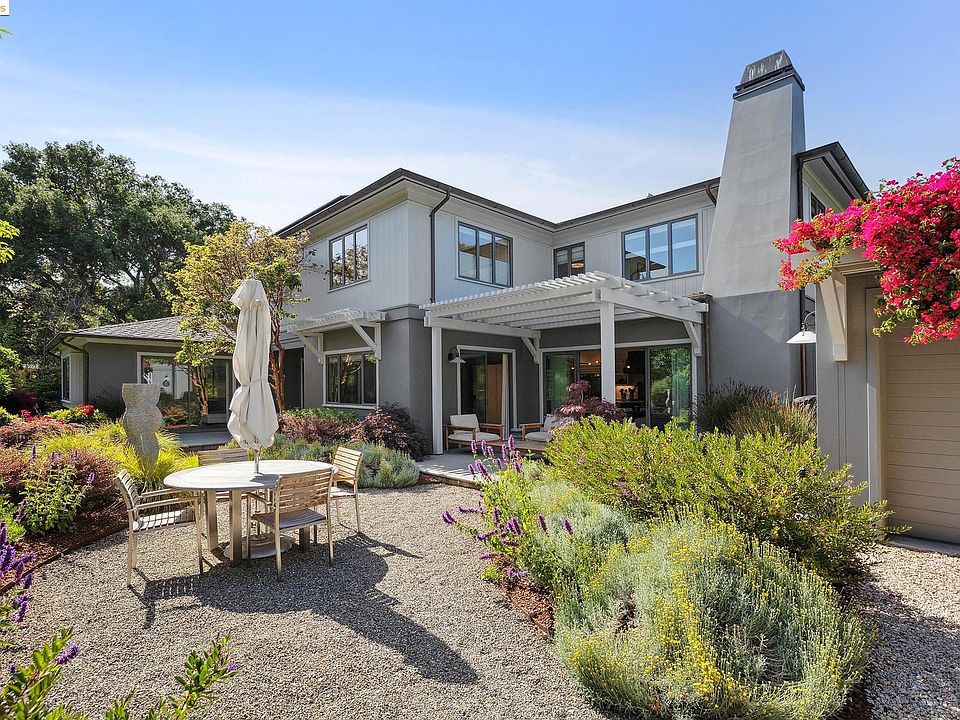 Spectacular 1960 John Ballantine mid-century with every upgrade imaginable. Sun-drenched south-facing rooms with terrific indoor-outdoor access. This house offers an ease of living not often found with everything where you want it. An entertainer’s delight! Gracious living & dining rooms open to the spectacular garden as does the very spacious kitchen/family room. Study/bedroom w/ en-suite bath + ½ bath on main level. Upstairs a large primary suite w/ closets galore, dream bath w/ shower/sauna, free standing tub, and more closets. A bedroom currently used as a fabulous closet/office with bath, another bedroom suite w/ sitting rm, bath & closet. All Baths redone! Lower level contains a super-duper large bedroom suite w/ kitchenette, bath, murphy bed and separate outdoor entrance. Did I mention the oversized garage offering enclosed storage on 2 walls, temperature-controlled wine room, laundry, tv. Stucco walls surround the gardens, covered w/ blooming plants/vines, gorgeous fountain creating a serene and private retreat. Security gate to driveway, garbage can storage, secure mailbox & package bins.....In a perfect location adjacent to Monkey Island Park, and the best of everything, gorgeous/stylish interior, dreamy/magical garden, close to hiking trails, The Claremont Club/Spa, +