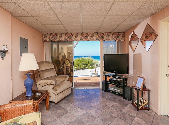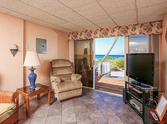 Seasonal. Enjoy breathtaking sunsets from this quaint 2 bedroom, direct Gulf front villa. Walk outside and you are on the beach with your toes in the sand!! Just steps to the crystal blue Gulf of Mexico. Turnkey furnished, flat screen TVs, cable and Wi-Fi included. Conveniently located near the Publix shopping center and restaurants.