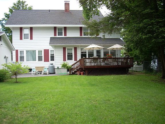 This well-cared for Colonial home is perfect for a large family or a family/business operation. Finished attic and basement for activities and stately first and second floors. A two car, detached garage and large, fenced yard give added value. Town water and sewer, hot water, baseboard heating system, insulation and new roof make this energy efficient and comfortable. Several porches, one covered and a deck on the rear plus a three season enclosed porch are great places to enjoy the weather. Being sold partially furnished.