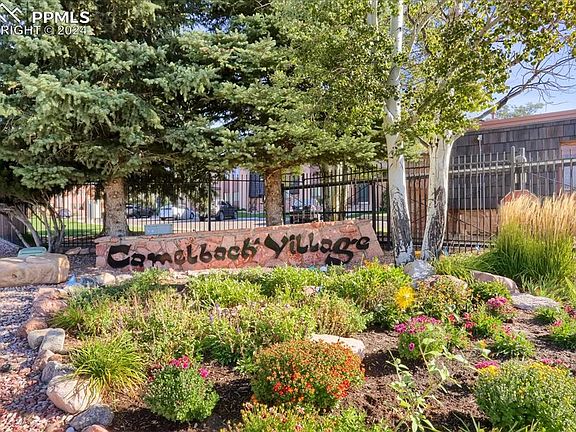 This beautiful two-bedroom, two-bathroom condominium on the main floor of Camelback Village offers an expansive living room featuring a wood-burning fireplace and a built-in bookcase. The spacious dining area opens to a fenced patio and backyard, perfect for outdoor enjoyment. The unit boasts updated hardwood flooring throughout, while the modern kitchen includes a breakfast bar, newer stainless-steel appliances, new upper and lower cabinetry, updated solid surface countertops, a pantry, and a convenient stackable washer/dryer area. Additional enhancements include newer windows, a sliding glass door, and various updated interior doors and light fixtures. Ideally located within walking distance to the Garden of the Gods, this property is move-in ready!