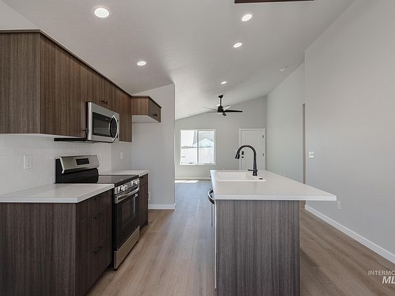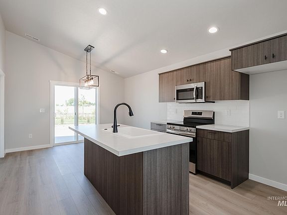 This brand new home located in vibrant Kuna, Idaho welcomes you with open arms. The Stella 1207 is adorable and bursting with charm! This thoughtful floor plan flows seamlessly through the home to deliver a cozy living experience. Three bedrooms, all situated on one side of the home, are designed to provide a secluded get-away to everyone. The centrally located living room, kitchen, and dining room are the heart of the home for lounging or entertaining. The kitchen is well-equipped with a spacious island, modern appliances, and plenty of counter space for all your culinary needs. The primary suite provides an en suite bathroom and large closet. Enjoy easy access to the back patio from the dining room and make the most of the pleasant Idaho weather, perfect for outdoor gatherings or quiet relaxation. Photos are of the actual home!