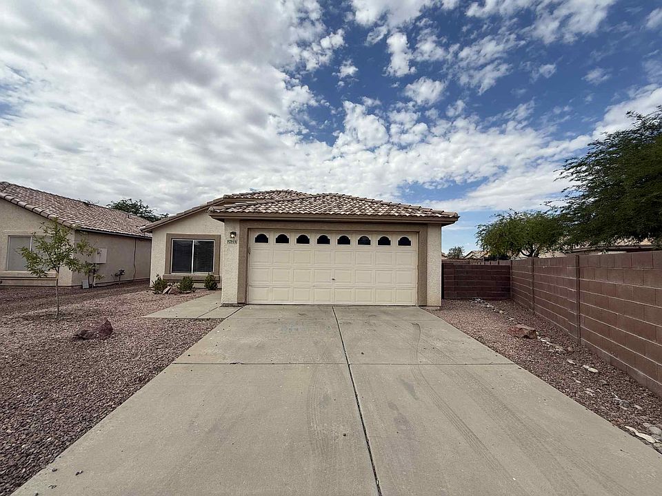 Located in the desirable Silver Creek Subdivision near Grant and Silverbell, this stunning 3BR/2BA home offers comfort, style, and convenience. Featuring commercial-quality wood laminate flooring throughout, this home boasts a spacious open layout perfect for modern living. The kitchen is fully equipped with black appliances including a refrigerator, stove, and dishwasher. Enjoy the massive, fully fenced backyard ideal for entertaining with a covered patio for outdoor relaxation. Additional features include a two-car garage, air conditioning, and washer/dryer hookups. Close to shopping, dining, and easy freeway access. This home has everything you're looking for, schedule a viewing today! 8 months.