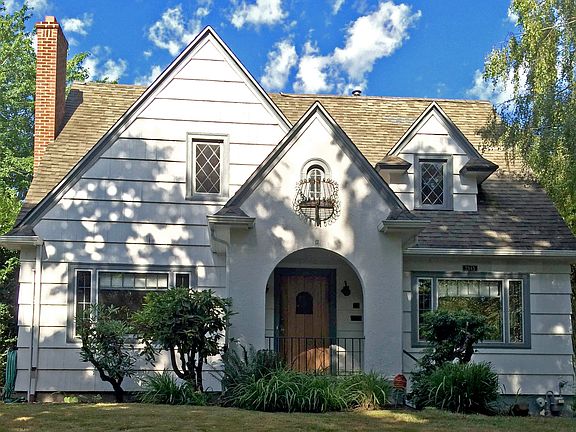 Charming 1920s English Cottage loaded with period details. Located in historic Irvington, a great walking neighborhood close to Whole Foods, restaurants and other great destinations. Warmth and charm abound! Original gum wood trim and doors frame the living and dining rooms. Wood burning fireplace. Hardwood floors. Beautiful tile floors in both bathrooms. 3 Huge bedrooms boast lots of closets. Tons of extra storage! Leaded glass windows add light to the large reading nooks in the upstairs bedrooms. Large, bright kitchen features a pantry, lots of storage and breakfast nook with garden view. A quiet backyard cottage garden overlooks the private patio. Perfect for entertaining! New roof, updated plumbing and wiring. Large full height unfinished basement has a washer/dryer hookup and restored detached garage add lots of extra usable space.