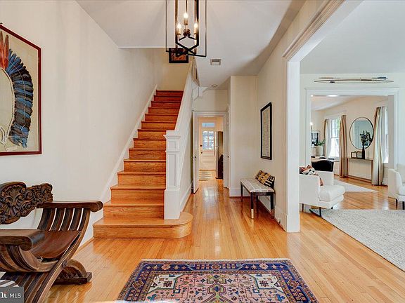 Welcome to this elegantly appointed four-bedroom, three-and-a-half bath townhome with exposures on three sides and beautiful period details intact. From the inviting front porch to the high ceilings, abundant light, and hardwood flooring throughout, this sophisticated city residence delivers many special features to please the most discerning buyer. The main level features a generous entry foyer opening to a sun-filled living room with custom built-ins and a wood-burning fireplace; a banquet-size dining room that could easily seat a dozen, and an updated kitchen with a large pantry; a laundry/mudroom and a convenient half bath. A relaxing den with French doors and access to and views of the gorgeous gardens complete the spacious first level. The second floor includes a primary retreat with an airy sitting room/office and an ensuite full bath. There are two additional bedrooms, one quite large accommodating a king-size bed, and a hall bath on this level. A walk-up attic offers plentiful storage. There is also a fully finished flexible lower-level in-law suite or family room with a kitchen, full bath, sleeping area, and a second washer/dryer. This beautiful home situated on a large level lot with lushly landscaped gardens, a pond, and a stone patio is perfect for playtime, gardening, and al fresco dining. Enjoy the convenience of the detached two-car garage that also provides extra storage. There is an additional parking space behind the garage. Ideally located on a quiet tree-lined street just two blocks from the Van Ness METRO, plentiful shops, a grocery store, restaurants, and a short walk to Rock Creek Park and Cleveland Park, this urban oasis is perfect for entertaining and everyday living.