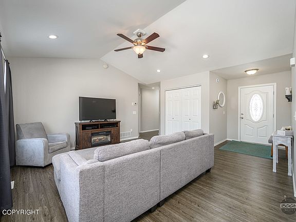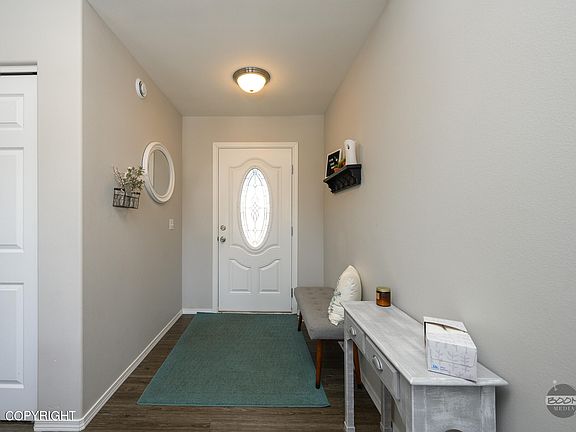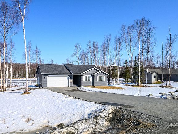 This beautiful Ranch home is like new. Built in 2017 and well maintained. The home sits on just over an acre, and is just minutes from Wasilla. It is 3 bedroom, 2 bathroom & 2 car garage. Open concept with pantry in the kitchen. Large Master Bedroom! Front and back yards are landscaped. Property is backed up to state land with a beautiful view. Extra parking on the side.