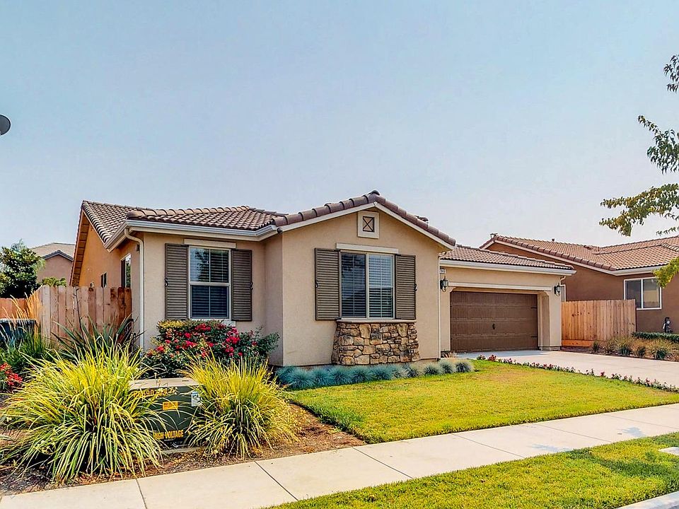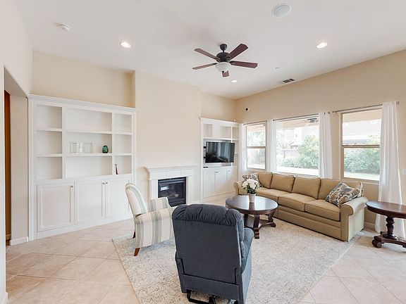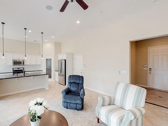 Never occupied 1919 square foot, 3 bedroom 2 bath former model home built in 2013 loaded with designer features and upgrades from the builder. The list includes: extended tile everywhere but the bedrooms, white cabinets, pendant lighting over the island, chandelier over the kitchen table, custom chevron backsplash, upgraded pantry door, family room built in cabinets, fireplace option, den option, optional hall bath backsplash, built in bedroom cabinet, alarm prewire, granite master bath counter, custom master bathroom shower, finished garage, insulated garage door, stamped patio concrete and professional landscaping. Move in ready condition.