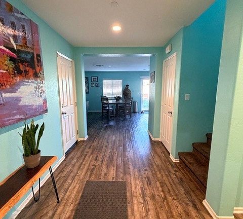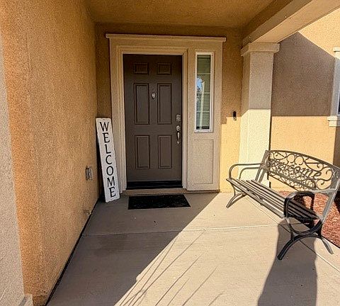 Elegant 7-year new two-story residence offering refined modern living with no HOA and leased solar to be paid off by seller at close of escrow. New owner to cooperate with Solar company to coordinate transfer. Open-concept floor plan with a bright living area flowing into the dining space and kitchen featuring chocolate brown cabinetry, granite countertops, stainless steel appliances and a pantry. All bedrooms are located upstairs, including primary suite with dual vanities, walk-in shower, and oversized walk-in closet, plus a spacious loft and dedicated laundry room. Backyard offers a blank canvas for outdoor living. Direct-access garage and convenient location near schools, shopping, dining, and freeway access. Move-in ready!