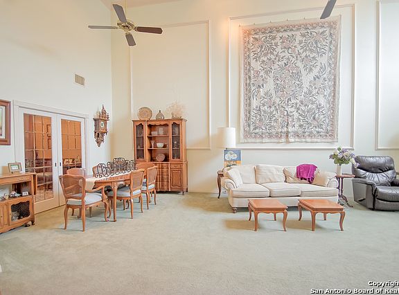 Wonderful home on cul-de-sac just a few feet away from Fair Oaks Ranch Country Club. Open floor plan w/ huge living room and w very high ceilings. Study/Office w/ sliding glass doors and custom built-ins off living area. Florida room is perfect for early morning coffee or relaxing in the evenings. Kitchen w breakfast room & bar is tucked away but still open to living room. Large master bedroom downstairs w private fireplace. Two additional bedrooms and loft upstairs. BOERNE ISD.