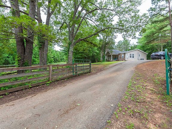Peace & Quiet with a private pond fully stocked with catfish, bass and bream. This 3 bedroom with 2 master suites offers it all. Gourmet kitchen. Rec Room or den with surround sound ready for family gathering. Formal living room. 3 full baths. Tons of parking . Deck and front porch to sit and enjoy the views. It has a 1 acre pond , blackberry bushes and muscadine vines and the rest of this luscious land is wooded. also a large building that is set up currently as dog kennels, can be shop