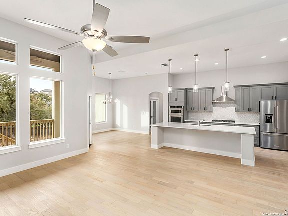 Welcome to your dream home in the exclusive gated community of Elkhorn Ridge, nestled in the charming town of Boerne, Texas. This stunning single-story residence boasts 4 spacious bedrooms and 3 bathrooms, offering comfort and style in every corner. With a generous 2,546 square feet of living space, this home provides ample room for all your needs. As you step inside, you'll be captivated by the open floor plan and high ceilings, creating an inviting and airy atmosphere. The heart of the home features a cozy fireplace, perfect for those chilly evenings, while the kitchen is a chef's delight, equipped with appliances, ample storage, and a convenient breakfast bar. The master suite is a true sanctuary, complete with a luxurious 5-piece master bath, offering a relaxing retreat after a long day. Three additional well-appointed bedrooms provide plenty of space for family, guests, in addition to a home office. Outside, enjoy the tranquility of your private cul-de-sac location and take advantage of the covered patios, ideal for entertaining or simply unwinding amidst the picturesque surroundings. The 3-car garage offers ample parking and storage space for your vehicles and belongings. Elkhorn Ridge is known for its gated community and offers a secure and peaceful environment. Boerne itself is a charming town with a rich history, offering a delightful blend of small-town charm and modern amenities. Don't miss the opportunity to call this exquisite home yours and experience the best of Boerne living.