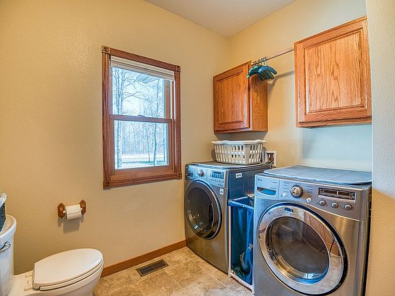 Custom house in desirable Fairway Heights develop north of the Bemidji Town and Country Club with access to Lake Bemidji State Park. This 5 bedroom, 3.5 bath features exceptional top-quality construction and materials throughout. Open floor plan with custom rustic hickory kitchen cabinets, sliding door that opens to an oversized deck to entertain. Master suite, 2 bedrooms, and an office on the main floor. Master suite has custom shower, 6’ jacuzzi tub, and double vanity sinks. Lower level offers 2 bedrooms and 1 bath with large family room to entertain. High efficiency natural gas, Lenox Furnace with air condition, and air exchanger. Oversized insulated attached garage (750 sq ft) and 28x28 detached garage to store all your toys. Beautifully wooded yard, large fenced in garden area with adjacent outdoor fireplace area.