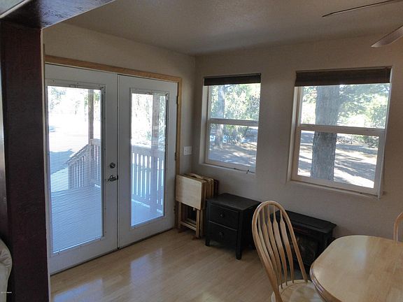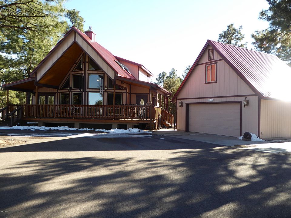 A very nice and well kept two story Chalet in popular Forest Trails. The home features a nice size kitchen with grainte counter tops that opens up to to a very open family room with large windows looking out to the covered patio and large ponderosa pines, knotty pine T&G ceilings, ceramic tile, absolutely stunning bamboo flooring in dinning area. The large three car garage has two seperate doors wth a heated loft that would work well as a game room, man cave or let your imagination wander. The home and garage has metal roof that is approximately 10 years old This home is a must SEE.