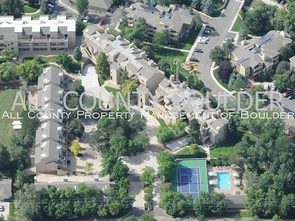 Beautiful updated condo in great North Boulder location. Wake up every morning to amazing views of the Flatirons from the master bedroom. Nice 5 piece master bath with soaking tub and custom built walk in closet. Large patio with mountain views, great for entertaining! Lovely kitchen with stainless steel appliances, newer quartz counter tops, and custom built European cabinets with tons of convenient built-in features. This third floor unit with vaulted ceilings and wool carpet is a must see! Includes 2 underground parking spaces, large storage closet, elevator to the third floor, and washer and dryer in unit. Access to community pool and tennis courts. Park like grounds in this secluded North Boulder secret. Close to bike trails, bus stops, shopping and more. Application fee is $50 per adult. First months rent, security deposit, $200 move-in inspection fee, and $200 HOA fee due upon lease signing. Max occupancy is 3 unrelated adults. Rental license #RHL2017-00599