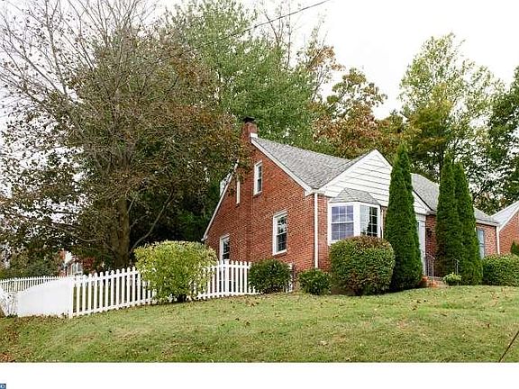 Pretty street, convenient location, low taxes and a charming Cape Cod are a great combination. The solid brick construction and aluminum siding make this home easy maintenance along with a back yard that is completely closed in with durable picket style vinyl fencing. The yard has privacy and lots of space for pets,gardening and a play area. There is a large attractive shed just near the entrance to the back yard with plenty of practical space for storage. This 3 bedroom, 2 full bath single family home is in great condition and has been freshly painted. Other amenities include a new vinyl kitchen floor, updated laminated natural looking wood flooring (Pergo) in living room, dining room and downstairs bedroom, hall and the entire upper level. There are replacement windows throughout including the basement. Also, Central air, newer GE washer and dryer set and new hot water heater (April 2016).The sunny living room has a fabulous huge bay window that replaces the original flat window. There is a formal dining room and a good size eat in kitchen with plenty of cabinets and a side door to the driveway. The downstairs bedroom with ceiling fan would also make a great office, den, workroom or guestroom. There is also a guest closet and linen closet on this level. The second floor has 2 very large bedrooms, both with ceiling fans. There is a full bath with tub and a linen closet in the hallway. The daylight basement is large, dry and has loads of shelving and cabinets for great storage. There is plenty of clean open space for a playroom or could easily be finished for additional living space. This is a great property, competitively priced, great location, conveniently located to schools, shopping, Route 3,close to the Blue route (Route 476),less than half and hour to airport and 30 minutes to Center city. Home Warranty included for new buyer.