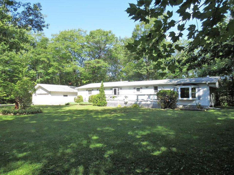 End of road privacy! 2 bedroom 1.5 bath mobile home with a 2 car detached garage. The kitchen is spacious with all appliances included and a beautiful tiled back splash, deck doors leading out to the back yard deck, living room with gas/stone fireplace, a bonus room that can be used as a craft/hobby room and a 29 x 8 addition with the laundry and extra storage.
