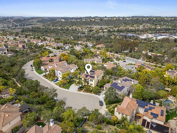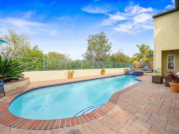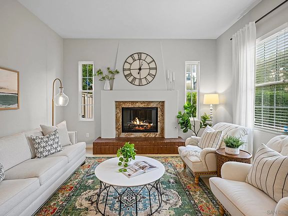 This stunning home in the Estancia Village of Rancho Carrillo offers the perfect blend of luxury and comfort. Located on a single-loaded cul-de-sac street for ultimate privacy! With five bedrooms, each with its own bathroom access, plus a first-level bedroom and en suite bath. The open floor plan is ideal for entertaining, featuring french doors leading to an open-air courtyard with a cozy gas fireplace. Additional upgrades include OWNED SOLAR, a whole-house water filtration system, newer A/C condensers, updated light fixtures and a newer water heater. The backyard oasis boasts a sparkling saltwater pool and spa with solar or gas heating, an additional firepit, and spacious side yards. The kitchen shines with white cabinets, granite counters, a large island, updated white subway tile backsplash, and newer built-in appliances, including a refrigerator, double ovens, microwave, and dishwasher. This home has it all—don’t miss out! See SUPP for Rancho Carrillo Community info!
