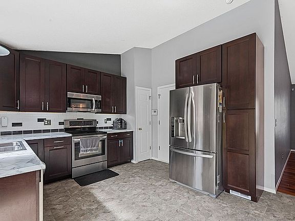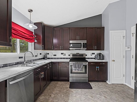 - Appliances: Dishwasher, Disposal, Microwave, Stainless Steel Appliance(s), Range/Oven-Electric