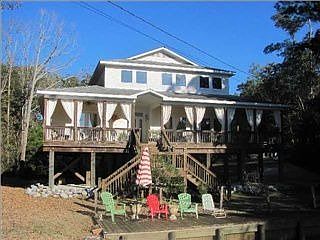 As you turn onto beautiful Raines Court picture yourself relaxing in this peaceful river paradise. From the driveway you can see the standout features of this home. Built on piers, this pre-Katrina home has never had it's living area flooded! Notice ground level stairs and entryway, there is plenty of room to park under the house, so you can stay dry everyday. Heading up the front steps, pause for a moment to enjoy the perfect view of the wide portion of Dog River. Below you is your river access, bulkhead and decking. You can practically pull up to the door. Walk around the outdoor living area, before entering and imagine dining under the stars. The interior is stocked with modern amenities: gorgeous floors, vaulted ceilings...you name it. The master bedroom has Western-facing morning views of the waterfront, and a private master bath. It is adorned with a glass walk-in shower, double sinks, tons of storage, a garden-style jacuzzi tub, and a large walk-in closet. The main living space has huge floor-to-ceiling windows to catch the setting sun, and is the center of this open floor plan. The separate dining area connects the den to the large kitchen. It comes with granite counters, a bar sink, beautiful modern cabinets, an eat-in bar, recessed lighting, you name it! Upstairs, the bedrooms are carpeted and have easy access to the recreation area that overlooks the den. The rec room has built in cabinets for the TV and books, and there is a possible extra bedroom/office/storage room just off the recreation room. The upstairs bathroom has tile floors, modern counters, and a marble shower. This truly is river living at it's finest, minutes from I-10 and Rangeline Road, above flood level living, like new construction! This lot has power pre-run to water. It is ready for you to build a boat house with a boat lift. You must see this one.