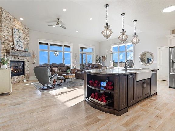 Step into this exquisite 3520 square foot (zero entry) residence that radiates modern elegance with its 11-foot vaulted ceilings and 9-inch white baseboards that complement the hand-scraped, white-washed oak flooring throughout the main level. The heart of the home is an open-concept living area, anchored by a chef’s kitchen boasting a striking granite-topped center island, a farm-style ceramic sink, marble tile backsplash, and custom self-closing cabinets with a convenient microwave drawer. This private area home is extremely well constructed, NO noise from adjoining unit with concrete and air gap between the shared wall. Solid 2x6 construction with blown-in insulation. Additional features worth mentioning: Whole house Generac Generator, Whole house Structured Water System, Whole house surge protector, humidifier on furnace, Immediate heat under kitchen sink,Added a Jacobs ladder for easy access to storage above garage (see addendum for more!)
