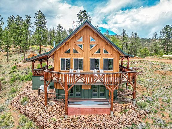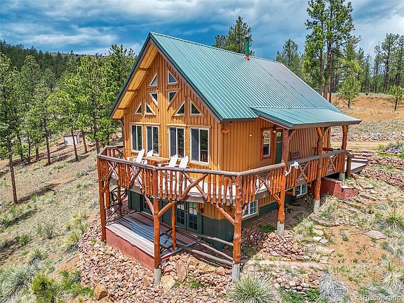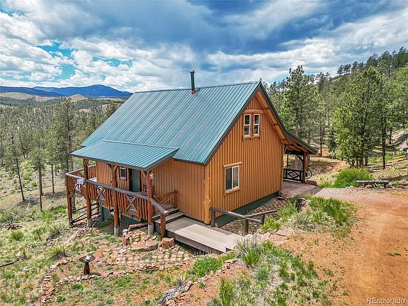 CHARM AND CRAFTMANSHIP do not even begin to describe this hand-crafted LOG LOOK gem. THE HOME IS ACTUALLY CEMENT BOARD SIDING with a log frame and metal roof. VERY LITTLE MAINTENANCE INVOLVED. Located on 2.09 acres just a short hike from the North Fork of the South Platte River and Pine Valley Open Space. Perfect for a primary residence, second home, or AirBnb. There are craftsmanship details and hand carvings everywhere you look. The full wall of south facing windows and deck offer views across the South Platte River basin toward the Kenosha Mountains, Pike National Forest and the Lost Creek Wilderness. A short walk through Jefferson Open Space to Pine Valley open space and the Platte River makes all of this your "backyard". This home features a main level bedroom and full bath, a great room with floor to ceiling stone fireplace and a charming rustic kitchen with newer appliances. There is a spacious bedroom, 3/4 bath, laundry and living area on the walkout lower level and a large open loft for a 3rd sleeping area or office. Located 5 minutes from Pine Grove, 15 minutes to all major shopping, 80 minutes to ski resorts and a 45 minutes easy access to the Denver Metro area. A new metal roof, newly stained/painted and A NEW WHOLE HOUSE GENERAC GENERATOR with a 7 year warranty will keep you cozy during any winter storm. This area offers award winning fly-fishing, hiking, biking, camping, etc. and is also considered a "banana belt". There is a nice level pad ready to build a garage or workshop. This one of a kind cabin retreat is a rare find and is definitely worth taking a look at!