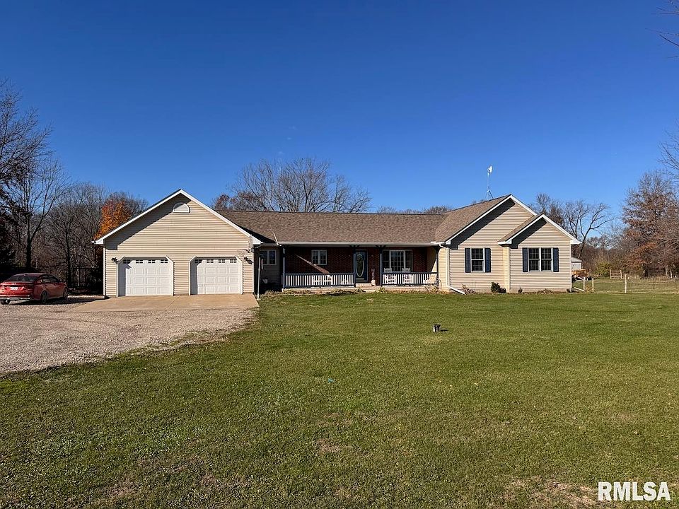Looking for a 10 ac hobby farm or just want to have privacy? Then consider this 3 bed, 3 bath updated ranch home in Farmington schools. Beautiful home, main floor laundry, 3 Bedrooms on main, Master bedroom, private bath, French doors leading out to a brand new 20x20' deck, 27 ft round pool and a wonderful view. Walk out basement features office space, spare room, large bathroom, unfinished family room, utility store room. Skylight in common bathroom. Whole-house fan. Great garage, garage refrigerator stays, insulated and heated, circle drive, plus out buildings. 6-7 acres of pasture, 1-2 acres wooded area, buildings. Livestock Barn is 36 x 48' House built 1997, Also for sale: JD 2012 tractor model 2305, Goats, Sheep and Chickens