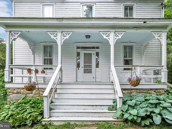 A Country Farmhouse - This home was built in 1880 and retains all of the character of farmhouses built in the 19th Century with modern conveniences. The beautiful front porch with the classic blue ceiling welcomes you as enter the property. Surrounded by a privet hedge, you will feel a sense of privacy and seclusion. The home is light, bright, and airy, with hardwood floors on all levels. The main level includes the living room with a gorgeous fireplace as the center point of the room. The separate dining room is perfect for entertaining. A transom window over the door in the dining room exits to the crown jewel of the home - a 3-season Sun Porch. You will spend all of your lazy days here, drinking coffee, working on jig-saw puzzles, or watching the wild turkeys that visit the property. The large country kitchen has wide open views of the back of the property. There is table space in the family room for lunch or game nights and a cozy, brick-lined wood stove. On the second level are 2 bedrooms and a full bath. The 3rd level, a converted attic is perfect for a work from home office or 3rd bedroom. Situated on 5 acres of mostly cleared, level property, this listing also includes 2 barns and a chicken coop. Bring your horse - one barn contains a mare's stall and a loafing room. Both barns have haylofts. New Oil Tank in 2020, The location is perfect ~ 30 minutes to Towson and 695 and less than 20 minutes to Bel Air.