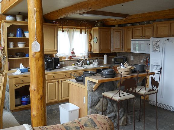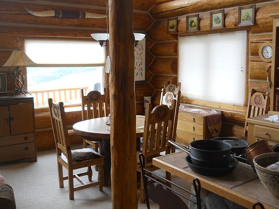 CUSTOM LOG HOME. Hand peeled logs & custom kitchen. MBDRM on top floor w/ loft sitting area w/ great views. Main floor gas fire place, large living area, & full bath & bedroom. Large deck w/ million dollar views to the south. Downstairs has 1 car garage, living area , laundry room , full bath. Private gated subdivision that backs up to national forest. This is a real log cabin not milled logs from a factory. Hand built & totally custom. 34 miles to world class skiing. Has private fishing also.