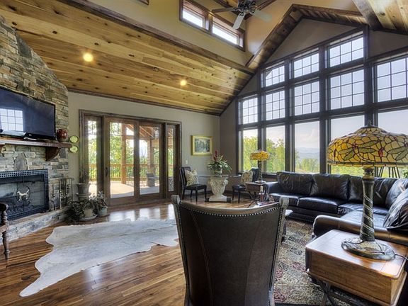 This luxurious custom built home in DThe Summit on Bluff MountainD features the best of the best in craftsmanship and design, from the gourmet kitchen with granite countertops, custom cabinetry, double ovens and gas cooktop, to the gleaming Brazilian walnut floors and tongue & groove ceiling in the dining area, living room and foyer. The elegant MAIN LEVEL MASTER SUITE is spacious and well-appointed with lovely coffered ceiling, huge walk-in closets with built-ins, granite vanities, tile surround walk-in shower & whirlpool tub. There are three bedroom suites on the main level along with the laundry room. From this level you walk-out to the covered Trexx deck with outdoor grilling station that offers lots of room for outdoor living and year round entertaining overlooking long range mountain vistas. Downstairs you will find a second fully equipped kitchen, tile flooring, LARGE FAMILY/THEATER ROOM with recessed lighting, two bedrooms with efficient 2-way bathroom suite, a half bath and walk-out to the back patio/yard area where you can easily access the 24x40 equipment garage/workshop where you can store tools, mowers, seasonal dcor, etc. The two-car carport and enclosed one car garage are located at the front entrance to the property, and there is even a finished room over the garage that would make the perfect spot for your home office, hobby room, or play room. This is a MUST SEE property if you are looking for a luxurious mountain modern home in a prestigious well maintained community. All appliances in both kitchens, the washer & dryer, and the outdoor grill remain with the property, and the custom pool table and large fireproof safe located downstairs are negotiable. Please See Disclaimers.