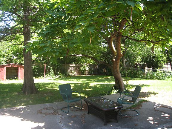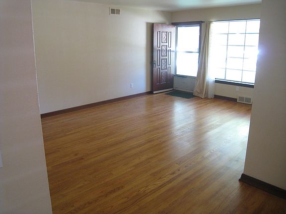 Comfy MidCentury Modern (1955) with many original features, including original golden-stained quartersawn oak hardwood floors, kitchen cabinets and wall tile, pink bathroom wall tile, and sliding wood closet doors. Covered front porch. Large, shaded patio in backyard. Tenant pays utilities