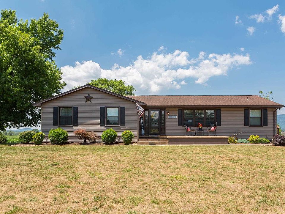 Don't Miss Out!! This home checks all the boxes with one level living, open floor plan, acreage and views. You will love this well maintained rancher with it's homey feel and captivating views of the mountains. This 3-bedroom, 2-bath home has a 1 car garage, giving you over 1,700 sq ft of spacious living, updated kitchen w/wood cabinets, large island, and impressive pantry. Start each day by watching the sunrise on the front porch, while sipping on your favorite cup of joe. Fill your days with gardening or entertaining the special people in your life. Then, enjoy the hot tub or the 12X13 screened in porch as you take in the beautiful sunsets over the mountains & finally imagine restful sleep in the primary bedroom w/remodeled bath. The full unfinished walkout basement is in pristine condition & has a 1 car garage offering many uses. A 6X8 storage building & a 12X12 free standing deck that's wired for a pool pump is also located on the 3.6 acres of level & gently rolling land. Naming a few of the updates: new windows were installed in 2014, new kitchen appliances in 2014, and new siding and gutters in 2020. Come see this lovely well-maintained ranch & make it your new home. With space inside & out the possibilities are endless!