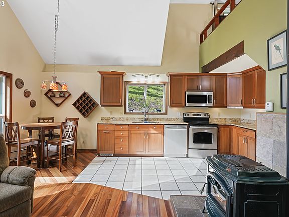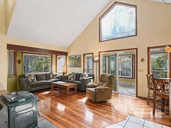 Welcome to a True Northwest Contemporary Oasis! This Home Evokes a Sense of Serenity Through Soothing Design Choices and a Perfect Blend with Nature. Kitchen Redone w/Mahogany Cabinets, Stainless Appliances & Granite Counters. Tigerwood Hardwood Flooring. Loft Style Main Bedroom Suite. Both Bathrooms Expanded & Redone. Beautiful Slate/Tile Showers.  Pellet Stove. Fresh Exterior Paint. Large Deck; Hot Tub Ready. Hobby/Work Shop/Storage. Almost 1/4 Acre Lot. Only Minutes to UO and Hendrick's Park.