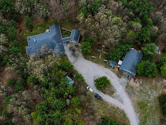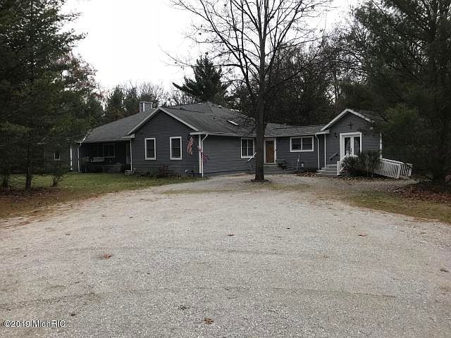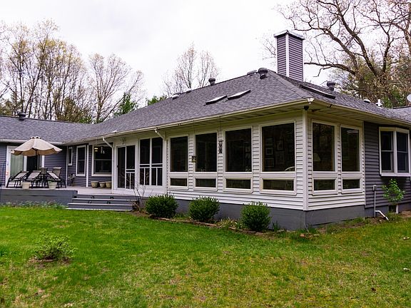 Nestled in the middle of almost 5 acres of wooded privacy, sits this custom built 7 bedroom, 3.5 bath sprawling ranch. Over 4000 square feet of main floor living offering 2 separate suites, including handicap accessible in law suite, multiple family & bonus rooms, gorgeous 4 season porch overlooking nature, spacious rooms, and ample storage. This is not including the full unfinished basement below! Featuring cherry cabinetry, hardwood & tile throughout, with heated floors in master bath and porch, security system, outdoor wood burning system for primary or backup, and composite decking, including large screened in deck off the living room and open deck overlooking the back yard. Pole barn is 32 x 48 x 14 High, so you can pull your motor home right in.