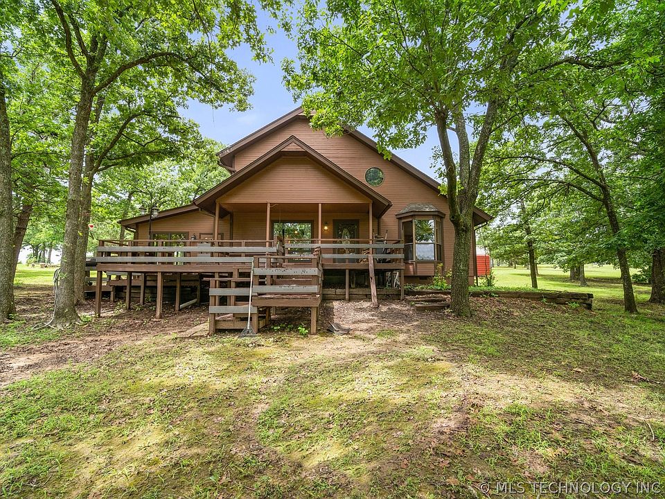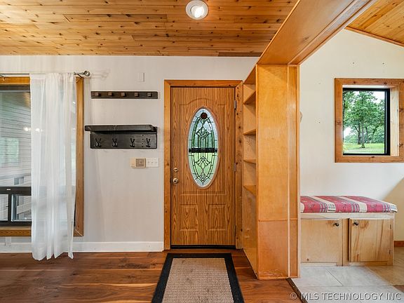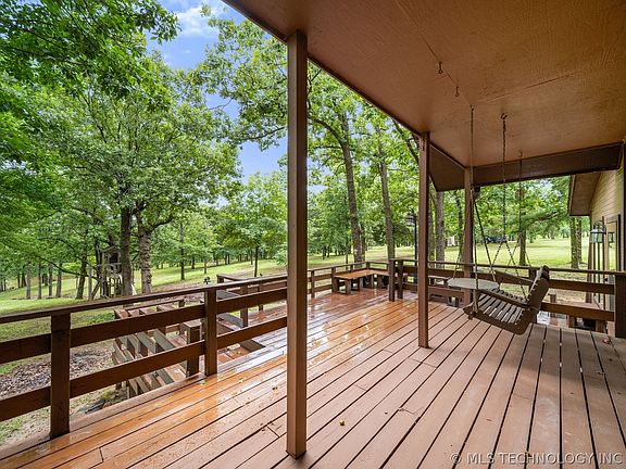 Park like setting on 10 acres located just minutes from Keystone Lake. This 2 bed, 2 bath home features concrete and granite counter tops and beautiful red cedar vaulted ceilings. The oversized detached 2 car garage has lots of workshop space. Property has 2 ponds and 2 12x60 storage sheds. Being Sold As-Is.