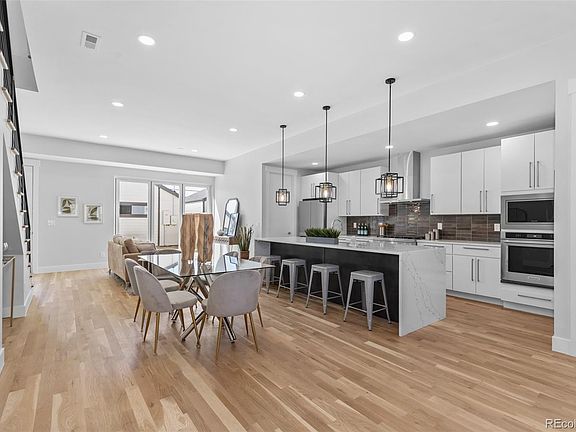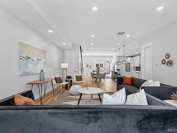 Welcome to 2947 Elati – SOBO’s Premier New Townhome. This 3-story townhome offers the perfect blend of modern luxury and functional design. Located in one of Denver’s most sought-after neighborhoods, this 3-bedroom, 4-bath center unit is packed with high-end finishes and practical features. Step inside to find gorgeous white oak flooring that flows seamlessly through the open-concept main level, which includes a chef’s kitchen outfitted with premium KitchenAid stainless steel appliances, sleek soft-close cabinetry, and a spacious walk-in pantry. The striking waterfall quartz countertops provide both beauty and durability, while expansive panoramic doors lead to your private backyard — perfect for relaxing or entertaining. The second level features a luxurious primary suite, complete with a spa-like 5-piece bath and a generous walk-in closet. Another oversized bedroom with an ensuite bath and convenient laundry room complete this floor. On the third level, natural light floods the space through three strategically placed skylights, illuminating the additional living area. Here, you’ll find a wet bar, a private balcony, a third bedroom, a full bath, and a versatile office/flex space. Additional highlights include soaring 10-foot ceilings on the main level, Anderson windows (with white interiors and anodized bronze exteriors), a cedar privacy fence, professional landscaping, and a detached two-car garage. Energy-efficient features like dual A/C, a high-efficiency furnace and water heater, and a heat recovery ventilator provide ultimate comfort year-round. Located just minutes from the best of central Denver, this home is perfectly positioned with easy access to DU, Platt Park, Wash Park, and only 0.7 miles to the light rail. A short stroll to the vibrant heart of Englewood, offering a wealth of dining, shopping, and entertainment options. Come see for yourself why 2947 Elati is truly a standout in Denver’s highly desirable SOBO neighborhood!